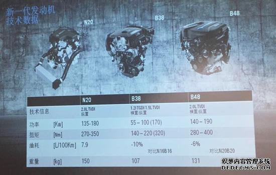 图中的B38和B48,便是BMW最新一代三缸及四缸涡轮增压发动机。从上图数据上来看, BMW全新三缸发动机,也就是B系列横置发动机序列的B38,排量1.5L带涡轮增压,其最大输出功率为100 kW,峰值扭矩220 Nm,基本达到目前市面上的其他主流品牌同排量四缸机水平。据华晨宝马透露,华晨宝马新发动机工厂将逐渐增产Bx8发动机,传统发动机N20将于2017年正式停产。也就是说,BMW最新一代三缸涡轮增压发动机,将进一步受到重视。