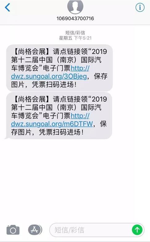 3、接下来,请注意接听来自客服小姐姐的电话,客服将为您发送车展电子门票。电子门票为一条带链接的短信。点开链接,即是电子门票,可截图,凭票入场。