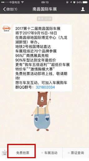 广受粉丝欢迎的“免费抢票”再度袭来,车展官方微信平台【南昌国际车展】推出全新“免费抢票”。报名更方便,查询更便捷,打造独具移动互联网特色车展。