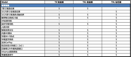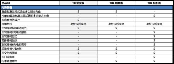 此外,无钥匙进入、一键启动、无感双感应雨刷、车窗远程控制、四门车窗一键升降、EPB电子驻车等功能的设置,也让用户在驾驶过程中更加得心应手。TXL钻石版还升级配置了感应式电动尾门、AQS空气质量自动控制系统(带PM2.5过滤)等功能,为用户提供细致入微的舒适体验。同时,DFD疲劳监测、TPMS胎压监测系统(带温度显示)、Auto-Hold自动驻车等领先科技的融入,让出行安全指数大幅提升。